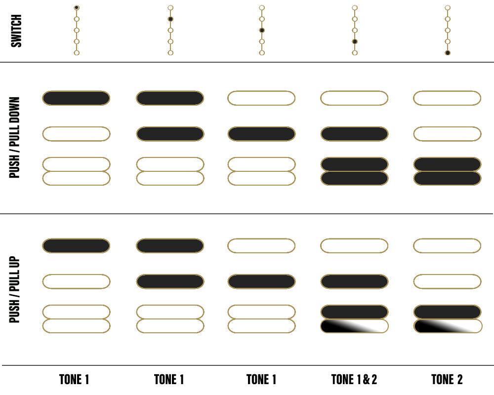 - Requires split coil compatible humbuckers